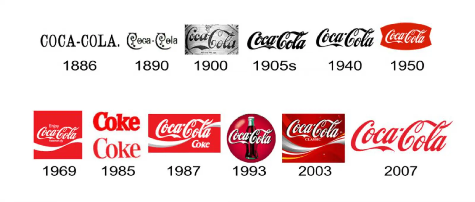 一直到現在,可口可樂商標經歷了多次的變化,但形體的發展一直都採用相同字樣,所選擇的顏色與字體都象徵著活力、動力,也依然保持著最純粹的原始配色──紅色、白色,這使他們的Logo帶給人們深刻的印象。